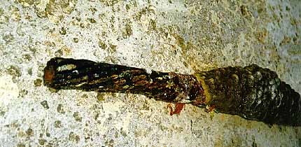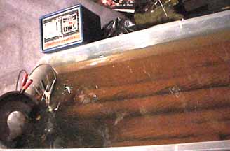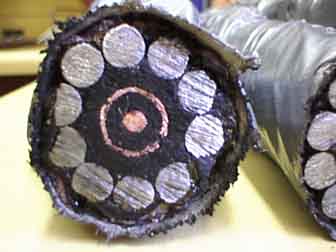 I wrapped the cable in several layers of duct tape to prevent it from drying out and, when I reached my home, I cut the duct-tape-wrapped cable:(18KB) into short enough lengths to fit into the electrolytic bath.