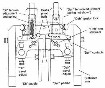 tension springs to set the paddle force for ''dit'' and ''dah''. Tension is